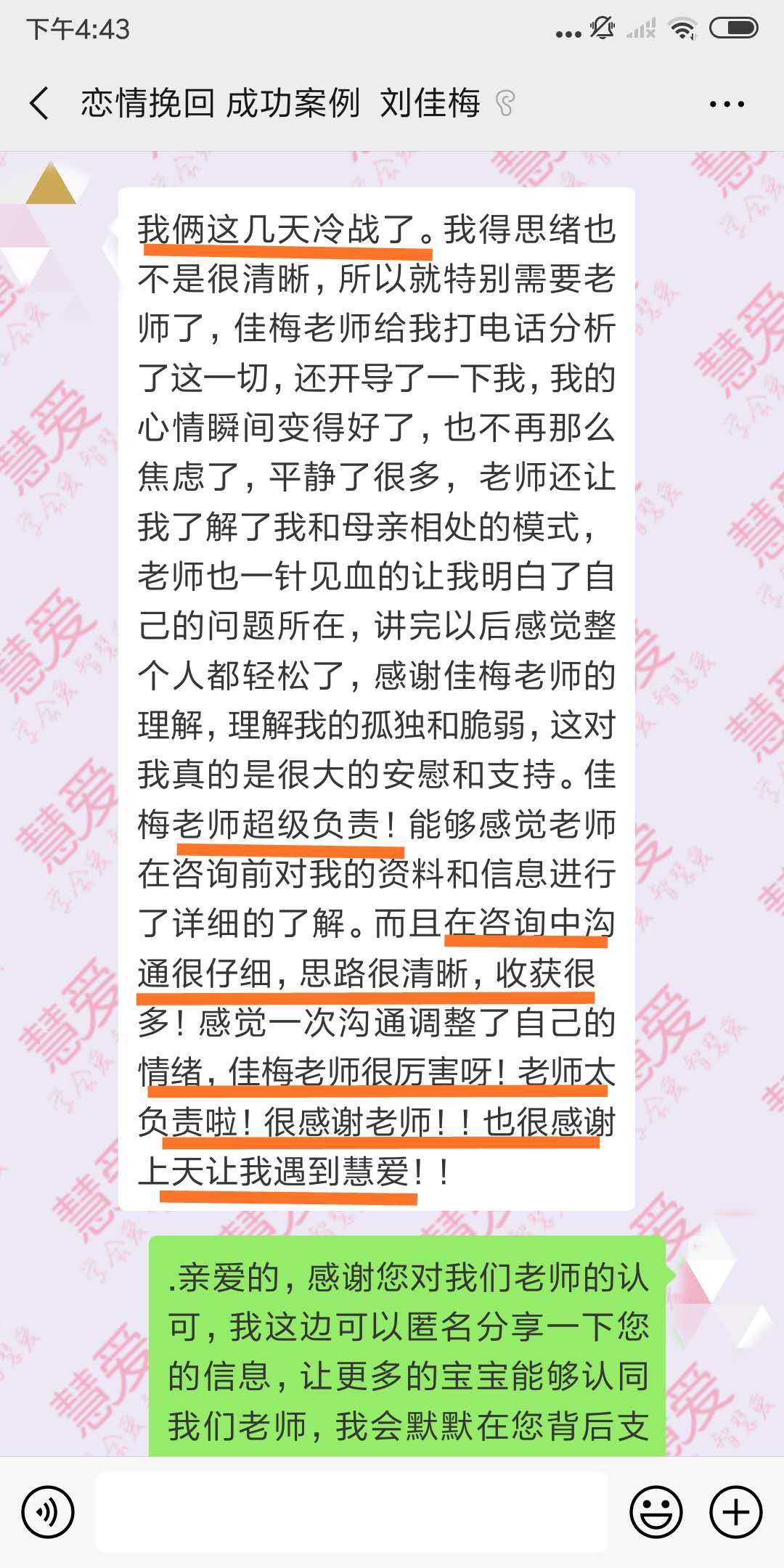 如果你为了挽回,用尽一切方法依然失败,只要你配合晚晴团队指导,他将主动跑回你身边,这种成功案例,我们已经屡见不鲜!